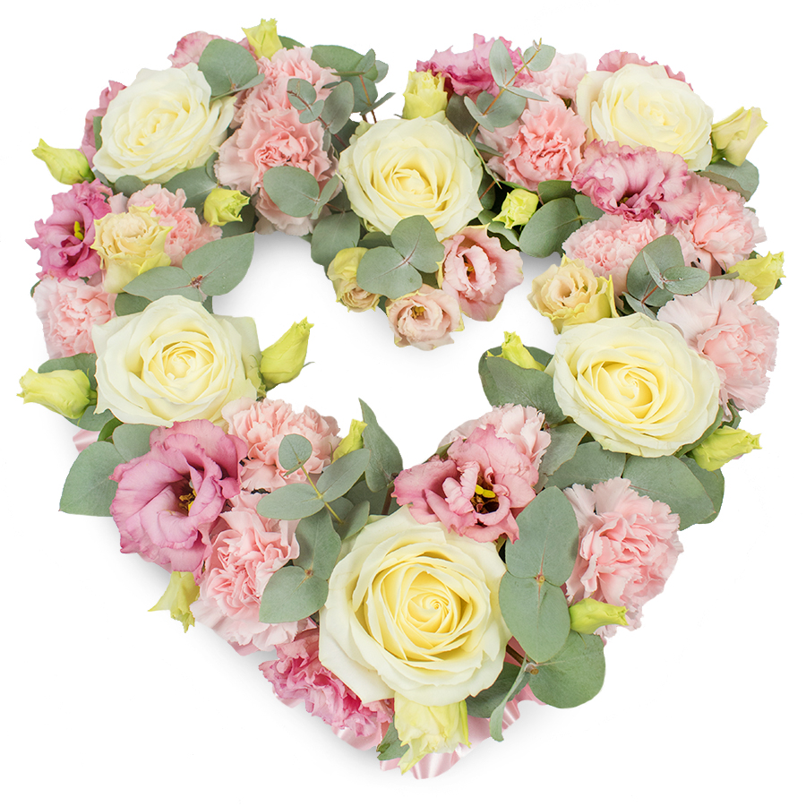 Our deluxe remembrance arrangement is a harmonious blend of nature's finest elements. Featuring luminous white roses, tender pink carnations, and enchanting pink lisianthus, all accented with fresh eucalyptus leaves, this bouquet is a true testament to elegance. Each flower is hand-picked and carefully arranged to ensure that every petal reflects the utmost quality and care.